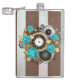 Steampunkuhr und türkisfarbene Rose auf Streifen Flachmann