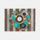 Steampunkuhr und türkisfarbene Rose auf Streifen Fleecedecke