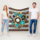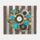 Steampunkuhr und türkisfarbene Rose auf Streifen Fleecedecke