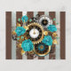 Steampunkuhr und türkisfarbene Rose auf Streifen Flyer
