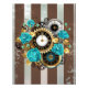 Steampunkuhr und türkisfarbene Rose auf Streifen Fotodruck