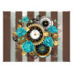 Steampunkuhr und türkisfarbene Rose auf Streifen Fotodruck