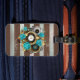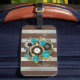 Steampunkuhr und türkisfarbene Rose auf Streifen Gepäckanhänger
