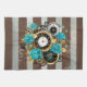 Steampunkuhr und türkisfarbene Rose auf Streifen Geschirrtuch