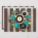Steampunkuhr und türkisfarbene Rose auf Streifen Karte
