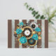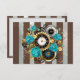 Steampunkuhr und türkisfarbene Rose auf Streifen Karte