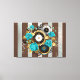 Steampunkuhr und türkisfarbene Rose auf Streifen Leinwanddruck