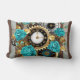 Steampunkuhr und türkisfarbene Rose auf Streifen Lendenkissen