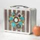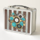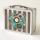 Steampunkuhr und türkisfarbene Rose auf Streifen Metall Brotdose
