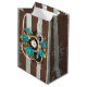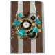 Steampunkuhr und türkisfarbene Rose auf Streifen Mittlere Geschenktüte