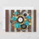 Steampunkuhr und türkisfarbene Rose auf Streifen Save The Date