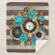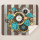 Steampunkuhr und türkisfarbene Rose auf Streifen Sherpadecke