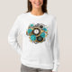 Steampunkuhr und türkisfarbene Rose auf Streifen T-Shirt