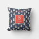 Dieses entzückende Feiertag Throwkissen kennzeichnet alberne Snowmen, Schneeflocken und Herzen über einem kundenspezifischen Farbhintergrund (gezeigt im Marineblau). Einfach, für ein Spaßgeschenk zu personifizieren!