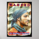 Ein humorvoller STECKBRIEF mit einem Porträt eines Mannes, der wegen 'Tragen eines Bandanas' gesucht wird.
