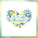 Herz und Schrift von Folkkunstbildern in ukrainischen Flaggenfarben und ethnischen Mustern