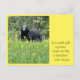 Postkarte mit dem Bild eines schwarzen Bären in einem Feld von Leuchtern auf einem gelben Hintergrund mit dem Sprichwort: "In einer Welt voller Rose, steh wie ein Lüster" auf der Vorderseite.