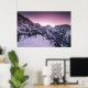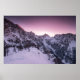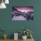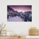 Stehend in einem Winterwunderland nach Sonnenuntergang an einem kalten Wintertag mit schneebedeckten Bergen.