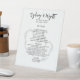 Tabletop Hochzeitsmenü in Schwarz-Weiß mit zwei Herzen Hintergrund. Dieses Design passt zu unserer rustikalen Birkenbäckerkollektion. Passen Sie den schwarzen Text mit den Namen der Braut und des Bräutigams oben an. Ort und Datum der Veranstaltung werden durch den Titel "Menü" ergänzt. Alle Vorspeisen, Vorspeisen und andere Menüauswahl sind in einem Absatz aufgelistet. Fügen Sie bei Bedarf Leerzeichen hinzu. Dieses weiße, stehende Schild kommt in größeren Größen.