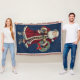 wunderschöner Vintager Santa stehend, der eine Kranzdecke hält