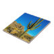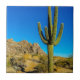 Die Fotografie kennzeichnet einen großen multi-bewaffneten Saguarokaktus durch einen Wanderweg, der in Richtung zu einem Flussstein gestreuten Berg in der Sonoran Wüste führt.