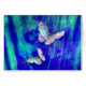 Zwei bunte Schmetterlinge, die aus einer surrealen Atmosphäre heraus, einem Strudel und Wellen des umgebenden Lichtes ähnelnd steigen. Hintergrund ist in den Tönen von Blauem, von Lila und von blaugrünem.