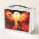Eine Brotdose mit einem Entwurf von einem Phoenix, das auf es steigt.