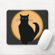 Steigende Mond-Katzen-Silhouette Mousepad kennzeichnet die Silhouette einer grünen mit Augen schwarzen Katze gegen den steigenden Mond