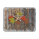 Jute-Blätter in Herbstfarben umgeben zwei Sterne und zwei kleine Herzen, die auf rustikalen Zauntafeln ruhen. Die Komposition schafft Schichten von Textur und Stil für das Kunstwerk. Das originale Foto ist maskiert, um sich nahtlos mit verschiedenen Hintergründen zu verbinden.