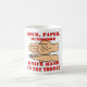 Stein, Papierschere, Messer Hand an den Rutsch Kaffeetasse