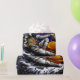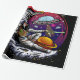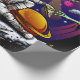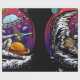 Originelle Vektorkunst eines Astronauten, der einen Mondkäse hat und eine Scheibe an eine Alien übergibt. Erstellt in Vektor.