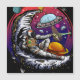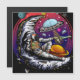 Originelle Vektorkunst eines Astronauten, der einen Mondkäse hat und eine Scheibe an eine Alien übergibt. Erstellt in Vektor.