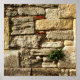 Das Bild dieses Gegenstands ist aus einer alten Steinmauer in verschiedenen Steinarten mit einer kleinen grünen Pflanze. Das Bild auf diesem Element wurde aus einem digitalen Foto, einem flachen gedruckten Bild, nicht erhöht oder texturiert erstellt.