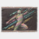 A cosmic figure bursts through space in a radiant storm of color and motion.