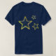 Das Design verwendet in erster Linie eine goldgelbe Farbe, die ihm ein helles, strahlendes Aussehen verleiht. Die Sterne haben eine klassische 5-Punkte-Form, mit einem größeren und zwei kleineren Stern, die ein Gefühl von Ausgewogenheit und Hierarchie schaffen. Die Sterne haben eine glänzende oder funkelnd Textur, die Tiefe und visuelles Interesse verleiht. Jeder Stern hat eine kühne, glatte Kontur, die die Klarheit und Unterscheidungskraft der Formen erhöht. Es gibt einen subtilen Farbverlauf innerhalb der Sterne, der zu einem dreidimensionalen Aussehen und Gefühl beiträgt. Die Sterne sind in einem dynamischen, leicht überlappenden Muster angeordnet, das Bewegung und Einheit vermittelt. Sie scheinen ein schwaches Licht um sie herum zu haben, das ihre leuchtende Qualität betont. Diese Eigenschaften machen das Design auffallend und geeignet für Themen rund um Feiern, Errungenschaften oder alles, was eine Touch von Funkeln und Eleganz erfordert.