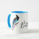 In der Blues, Türkis, Schwarz und Taupensängen sitzt ein featherischer Steller's Jay auf seiner japanischen Kirschblossom-Terrasse und beobachtet die Aktivität unten. Diese wunderschönen blauen Vögel sind in British Columbia beheimatet und haben ein ausgeprägtes "klatteres" Chirp. Diese Illustration wurde komplett mit einer Maus gezeichnet - und eine der vielen Illustrationen in meinen Kunstsammlungen auf Zazzle. Machen Sie es sich selbst oder geben Sie als Geschenk mit einer vollständig anpassbaren Text-Option.