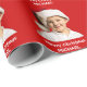 Foto eines niedlichen Kindes mit der Mitteilung der frohen Weihnachten und Namen des Kindes. Eine Spaßgeschenkverpackung dieser Feiertag, ersetzen das Schablonen-Foto und nennen mit Ihren Selbst, um ein stilvolles Verpackungspapier für Kinder besonders zu machen