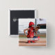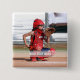 Foto eines Softballfängers bereit, den Ball vom Krug auf einem Buttonknopf zu empfangen. Die Fotoschablone ist einfach besonders anzufertigen. Geschenk für einen Spieler oder ein Team des Softballs, des Baseballs, des Hockeys, des Basketballs, des Fußballs oder irgendeines anderen Sports.