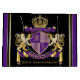 Schaffen Sie Ihr besitzen sehr Wappen, Familienwappen oder Emblem mit diesem schönen, klassischen Wappen oder Schildentwurf. Königliche lila Streifen verzieren ein Schild, das mit goldener Krone überstiegen wird und durch mittelalterlichen heraldischen Löwe oder Greif angegrenzt ist. Eine zusammenpassende Spitzenfahne hält Ihr kundenspezifisches Hochzeitsdatum/Geburtsdatum/Slogan oder Schlachtruf. Das Schild hat Raum für Ihre Monogramminitialen. Untere Fahne trägt Ihren Familiennamen. Es gibt auch Raum unten für Ihr Lieblingszitat, Motto oder Mitteilung. Ersetzen Sie den Beispieltext durch Ihre Selbst für ein personalisiertes Geschenk. Ich entwarf dieses, um für Familien, Paare und Einzelpersonen zu arbeiten. Macht ein wunderbares Geschenk für internationalen Wappenkunde-Tag, mittelalterliche oder Fantasie-themenorientierte Partys, Hochzeit, Jahrestag, Geburtstag, Ruhestand, Werbeaktion, der Vatertag, Junggeselle-Party, Polterabend, Abschluss und andere besondere Anlässe.
