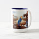 Eine zwei Ton Kaffee-Tasse, welche die Illustration kennzeichnen und Gedicht "stellen weg" gegenüber