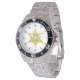 Diese Uhr ist mit einem sechspeckigen Abzeichen eines Goldsheriffs geschmückt und kann mit einem Namen versehen werden.