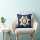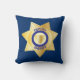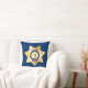 Ein großes, tiefblaues Abzeichen mit einem goldenen Stern des Sheriffs auf der Vorderseite. Die Rückseite des Kissens weist ein Muster des gleichen goldenen Sterns auf.