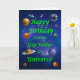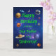 Geben Sie Ihrem weltraumliebenden Stiefvater die beste Geburtstagskarte aller Zeiten! Sag deinem Stiefvater, dass er der Beste im Universum ist. Eine Weltraumszene mit allen Planeten und dem Mond, die sich einem glücklichen Geburtstag wünschen.