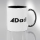 Eine Reihe kleiner Schritte neben dem Wort "Vater". Eine einfache, aber stilvolle Tasse - ist ein nützliches Geschenk für einen stolzen Sprungpapa.