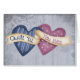 " Steppdecke ´til verwelken Sie!" Folkart quilters Entwurf: Zwei bunte Herzen mit dem Zitat geschrieben auf Rollen über ihnen.