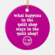 Was im Steppdeckengeschäft geschieht, bleibe im Steppdeckengeschäft! Lustiges quilter Sprichwort mit Gesichtsauge Wink-Shirts, -t-Shirts und -geschenken für quilters. Unglaublich witzig und niedliche steppende Geschenke für quilters die Liebe, am Steppdeckengeschäft heraus zu hängen! Einzigartige steppende Geschenke für Weihnachten, Geburtstage oder irgendeine Gelegenheit.