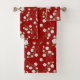 Steppmuster aus rotem und weißem Baumwolle Badhandtuch Set