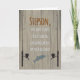 Geburtstagskarte für jeden Stiefel, der Lieben zum Fischen hat. An der Vorderseite befinden sich die Silhouetten von Stab und Rollen sowie ein springender Fisch auf einem holzgetreiften Hintergrund mit einem beängstigenden Effekt. Kluge Angelpisten vorne und innen bringen sicher ein Lächeln.