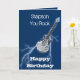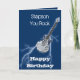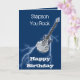 "Stepson, You Rock, Happy Birthday" Text auf der Außenseite mit silberner Gitarre und Blitz. Im Inneren ist ein Blitz mit Text, der "Geburtstag eines Rockins haben" sagt. Alle Texte können bearbeitet werden.