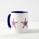 Feiern Sie mit dieser Star of Freedom Tasse mit dem Trio der patriotischen Stars der Horizontal Edition - ein kühner und fröhlicher Start in den Tag. Star of Freedom ist ein originelles Design von Hoda Moustapha, das mit Liebe für Einheit und Freiheit geschaffen wurde. © Copyright Kiwi Art.